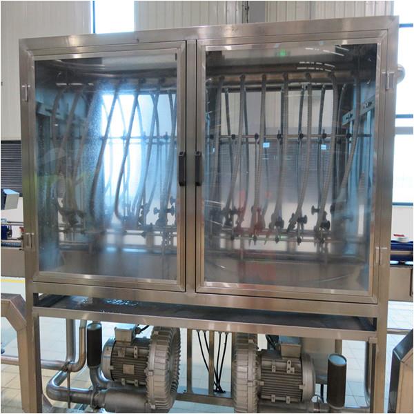 The top of the bottle cap conveying rail is provided with a detachable organic glass cover, Stainless steel dust cover is added to the cap warehouse. The cover can be opened locally to facilitate feeding. The conveying active and passive sprocket is made of high strength nylon material, food grade chain board. The belt is provided with a protective cover, which is easy to be disassembled and assembled, firm and durable.