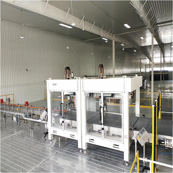 The low-level double-channel palletizer manufactured by F&P can reach 80 bales per minute.
