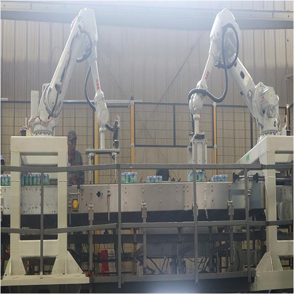 主體部分由ABB機器手和SEW伺服電機構成,能實現箱包輸送中的轉箱、分道操作。
